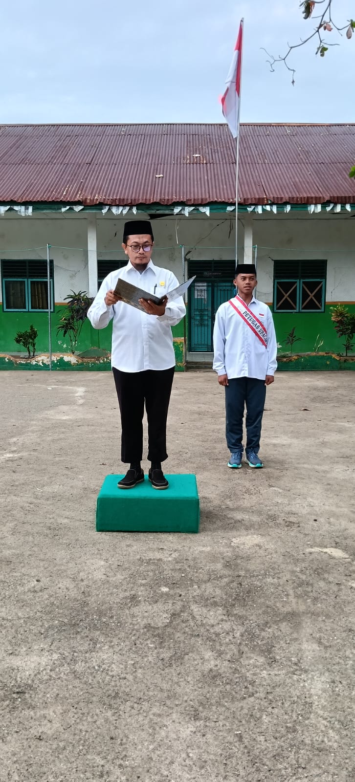 Bertindak sebagai pembina upacara, Ustaz Nur Rohim, S.Pd., menyampaikan amanat yang menekankan pentingnya kesungguhan dalam menuntut ilmu. Beliau mengingatkan bahwa menuntut ilmu membutuhkan komitmen, kesabaran, dan kedisiplinan yang tinggi. Setiap santri diharapkan memanfaatkan waktu belajar dengan sebaik-baiknya serta menjaga semangat untuk terus berkembang dan memperbaiki diri.
